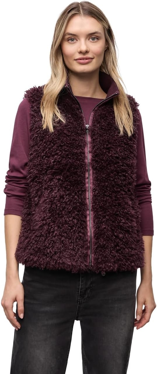 Die Fake Fur Weste von Street One für Damen verbindet kuschelige Optik mit modernen Details. Der Strick Stehkragen und der Tunnelzug am Saum sorgen für eine individuelle Passform, während die weiche Felloptik deinen Look stilvoll abrundet. Seitliche Taschen machen die Weste zum praktischen und modischen Begleiter an kühleren Tagen.