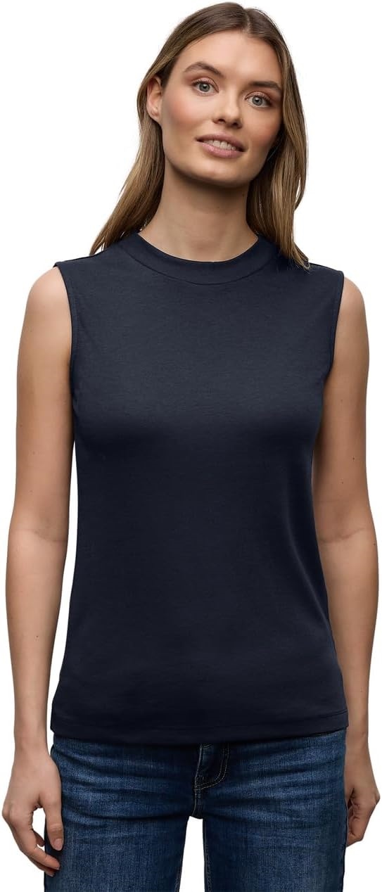 Das ärmellose Jersey Top von Street One für Damen mit Turtleneck überzeugt im cleanen Look und ist ideal für Layering Outfits oder auch solo getragen. Der softe Baumwoll Modalmix sorgt für ein angenehmes Tragegefühl, während die Unifarbe vielseitig kombinierbar ist. Ein vielseitiges Basic für deinen Kleiderschrank.