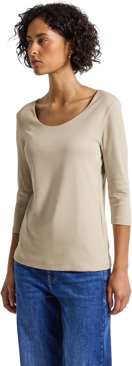 Dieses vielseitige Basic T-Shirt mit 3/4-Arm im Style Pania von Street One für Damen ist ein Essential für deine Looks. Du kannst das Damenshirt dank vielseitigen Ärmellänge über mehrere Saisons tragen. Sowohl als Single als auch in modischen Layering Looks unter einer offenen Jeansjacke oder Bluse macht das Shirt eine gute Figur und fügt sich wunderbar in deinen Look ein. Die gedoppelte Front sorgt für eine blickdichte Qualität, während der Rundhalsausschnitt dem Shirt eine lässige Note verleiht. Die softe Baumwoll Modalmischung liegt dabei besonders angenehm auf der Haut und sorgt in jeder Lebenslage für hohen Tragekomfort und eine figurschmeichelnde Passform.